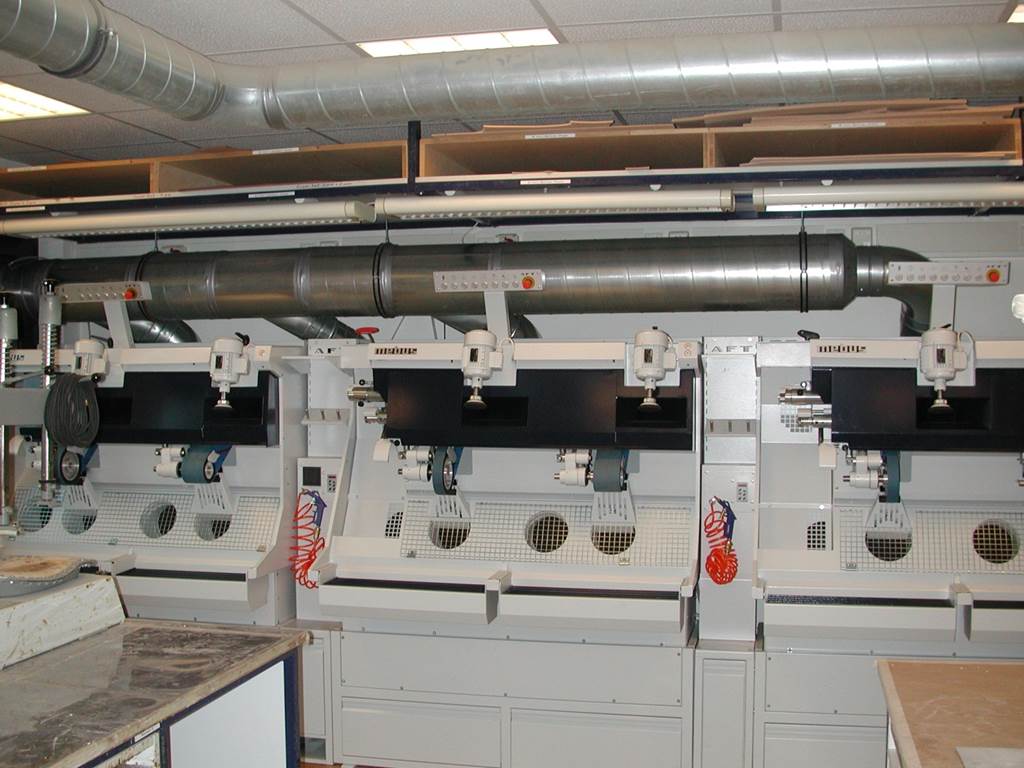 - Maschinenzeile der Firma Mebus AFT mit zentraler Absaugung