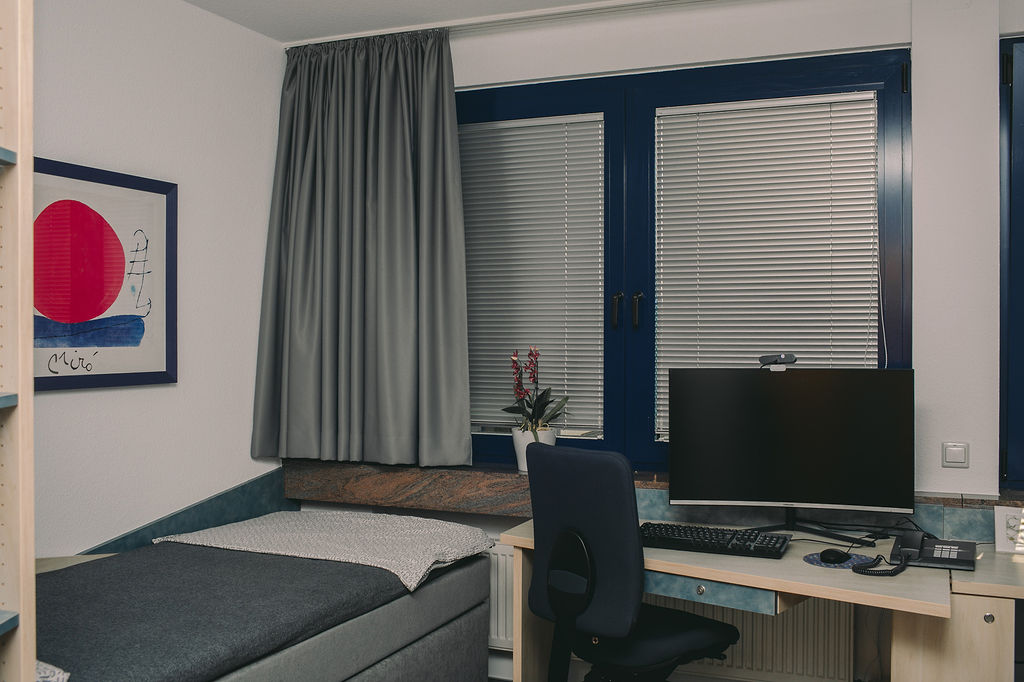 Die 10 Zimmer sind mit Vinylboden, Doppelschreibtisch samt PC mit Intra- und Internetzugang, Boxspringbetten, abschließbaren Schränken, HD-Sat-Anschlußdose und einem Duschbad mit WC ausgestattet.